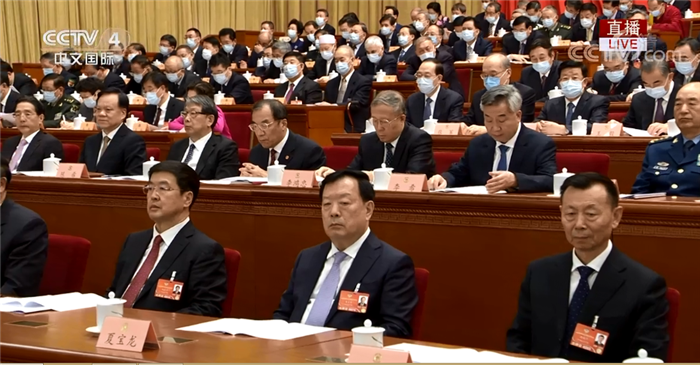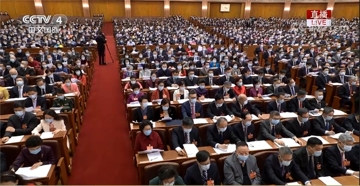 会议开始,张庆黎宣布:中国人民政治协商会议第十三届全国委员会第五次会议开幕!全体委员代表起立,唱国歌。