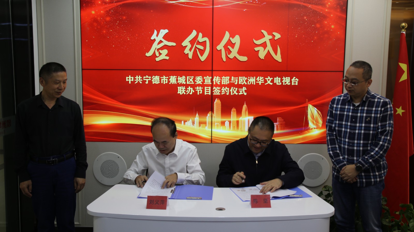 10月11日,旨在通过欧洲华文电视台开展对外宣传的宁德《蕉城之窗》电视栏目合作签约仪式,在欧洲华文电视台中国区总部(福州)举行。中共宁德市蕉城区委常委、宣传部部长陈坚,欧洲华文电视台副台长、中国区总监刘义萍等相关人员出席签约仪式。
