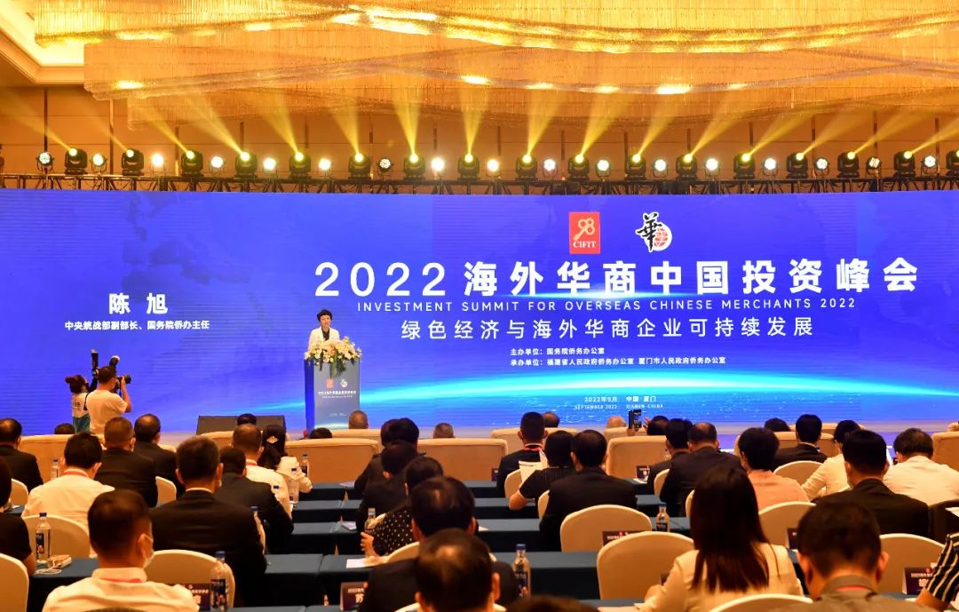 欧洲华文电视台记者报道,9月8日,由国务院侨办主办的2022海外华商中国投资峰会(简称“海华会”)在厦门召开。本次峰会主题为“绿色经济与海外华商企业可持续发展”。中央统战部副部长、国务院侨办主任陈旭出席会议并致辞。